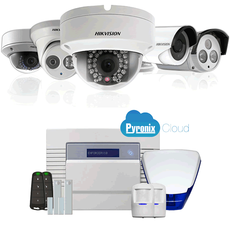Wired and wireless systems. Panels, PIRs, door sensors, panic buttons, Dual Tech sensors, bell boxes, smart phone app from Pyronix.
